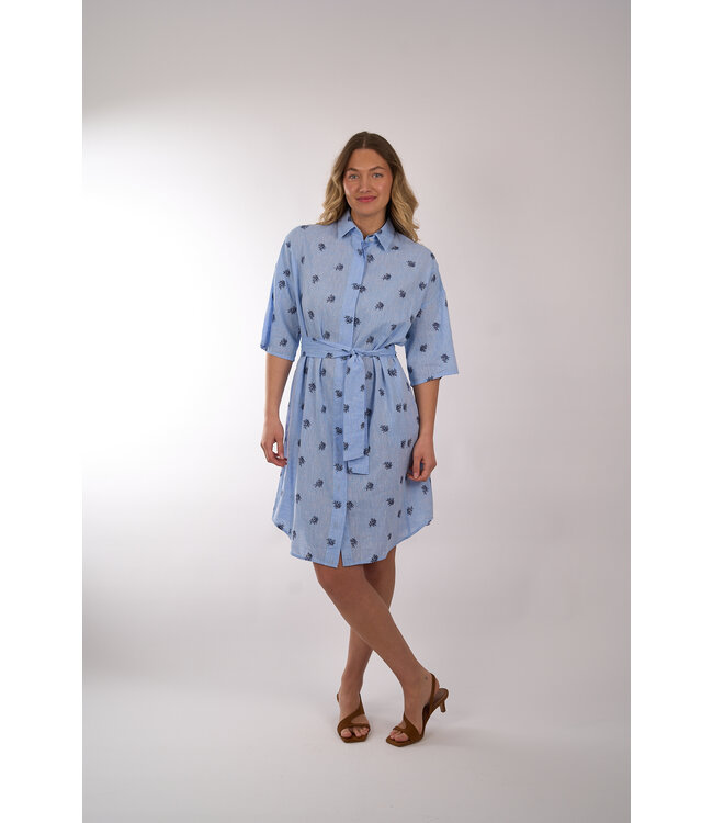 Jurk van 0039 Italy in een linnen uitvoering en een midi lengte. De jurk heeft een kraag, een doorlopende knoopsluiting en een los ceintuur om de taille te accentueren.