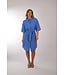 Jurk van 0039 Italy in een linnen uitvoering en een midi lengte. De jurk heeft een kraag, een doorlopende knoopsluiting en een los ceintuur om de taille te accentueren.