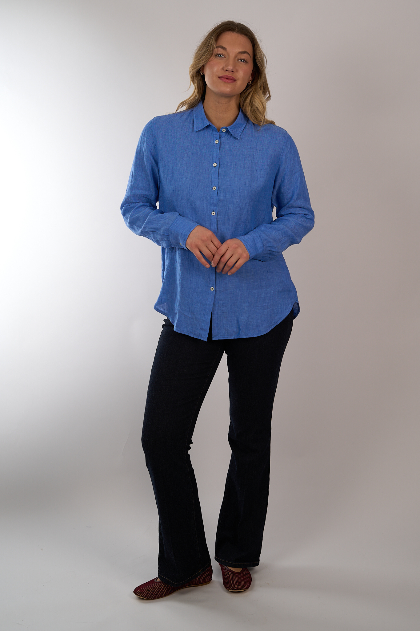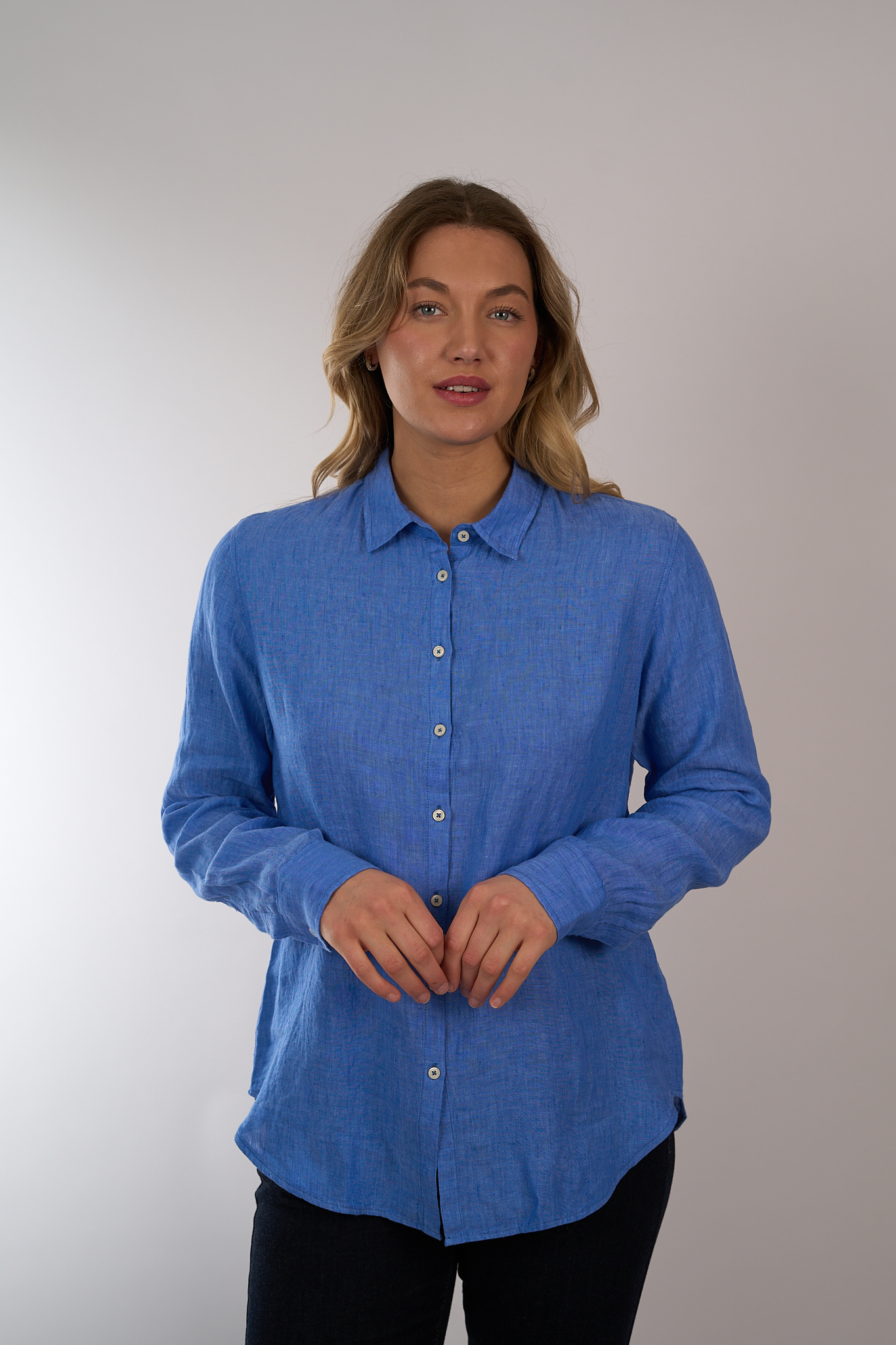 Linnen blouse van 0039 Italy voorzien van een rechte pasvorm, een afgeronde zoom en een knoopsluiting.