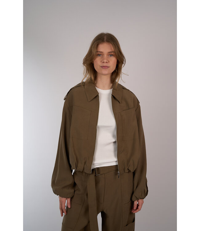 Utility jasje van Aaiko met elastische zoom voor een bomberjack effect. Voorzien van een ritssluiting, opgestikte zakken en schouder epauletten. Lees meer.