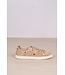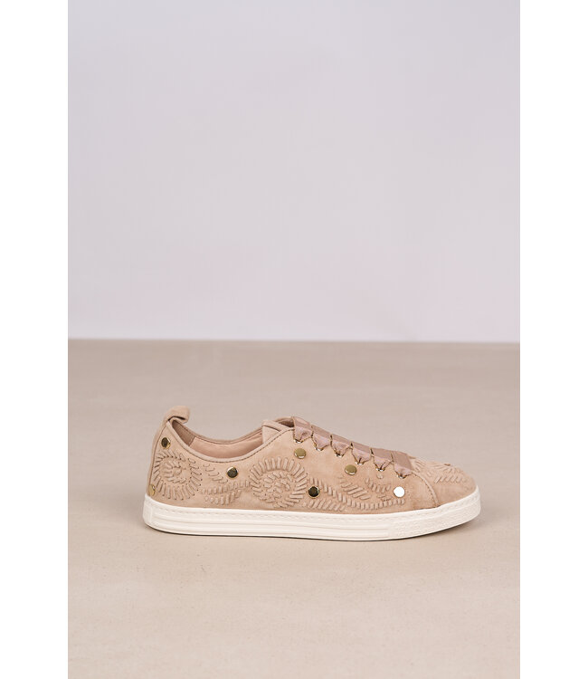 Lage sneakers van AGL met een ingeprint en deels gestanst patroon over de zijkanten en neus. De schoen heeft brede veters, goudkleurige studs en een uitneembaar voetbed. De zool is lichtgewicht, vlak en 15 millimeter hoog.