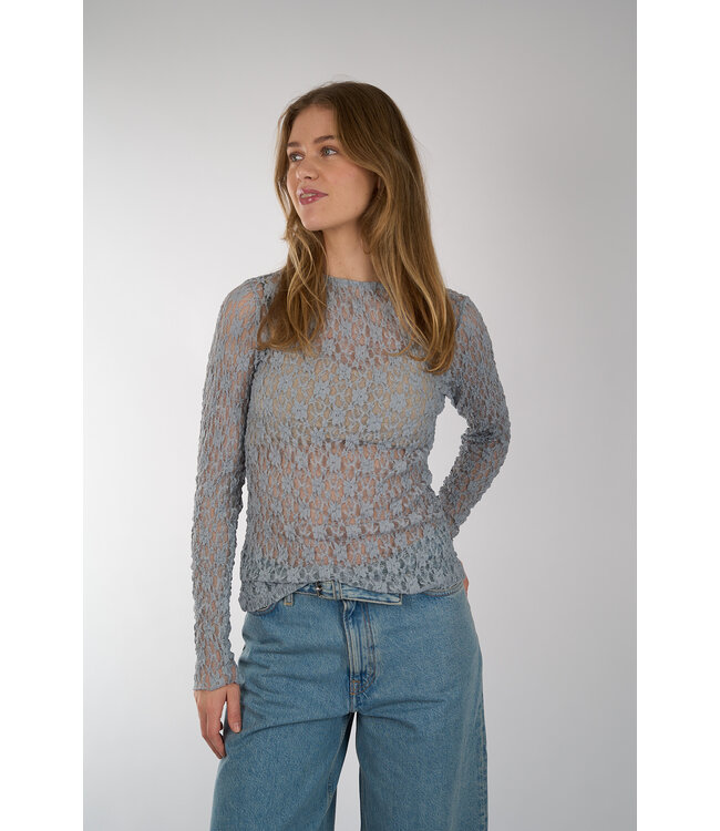 Kanten top van Aimee The Label met lange licht uitlopende mouwen en aansluitende pasvorm. Lees meer.