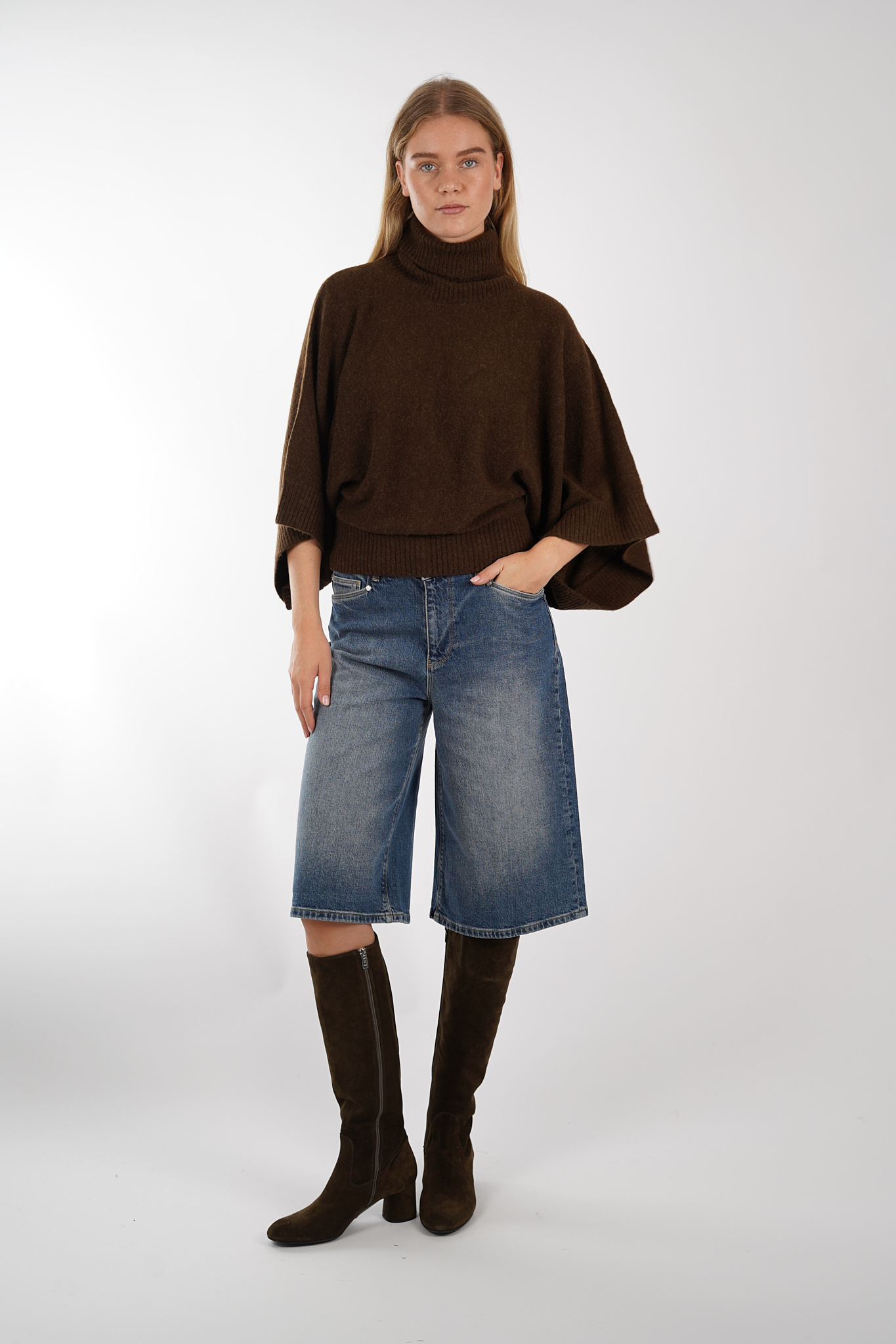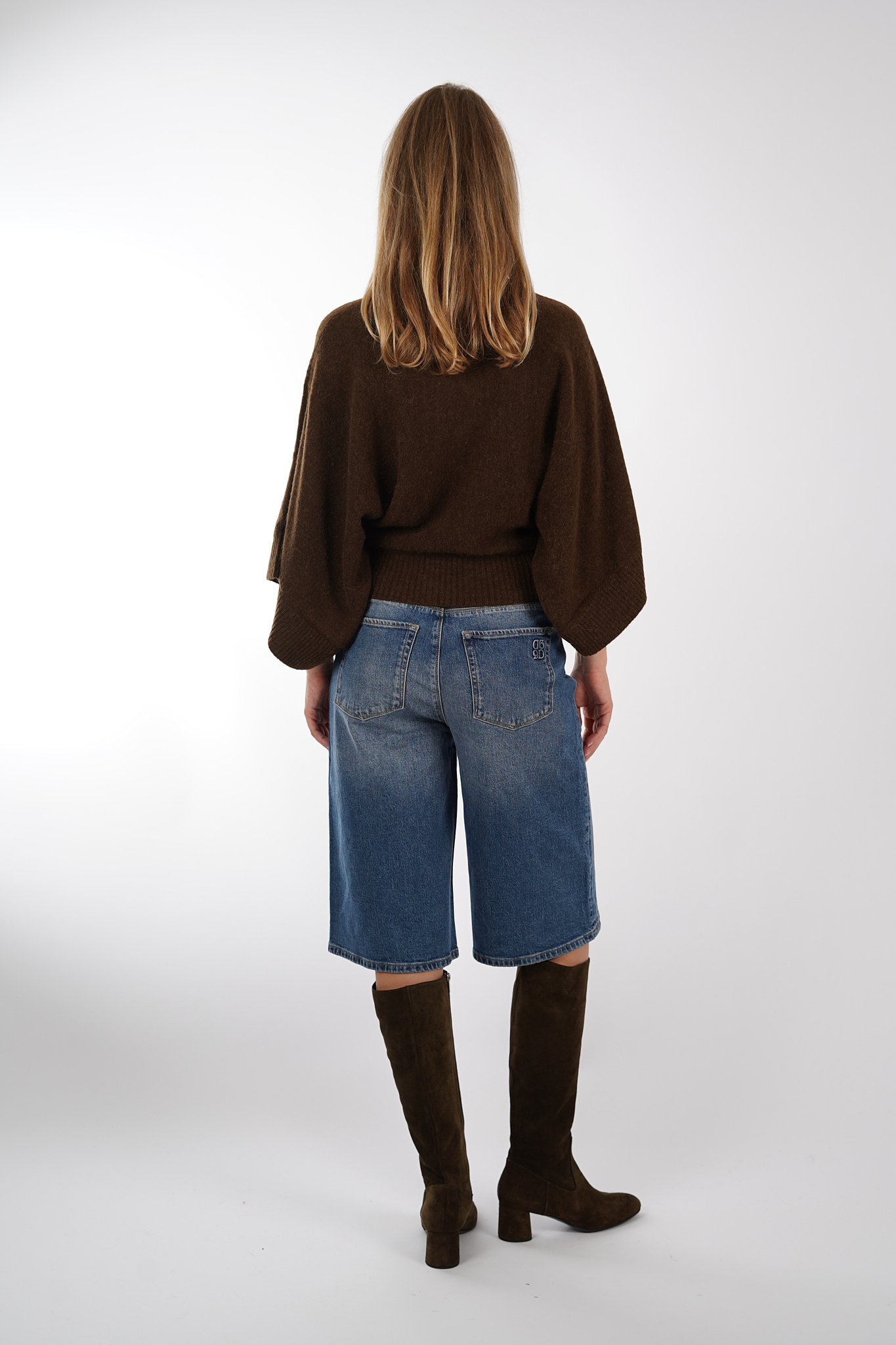 Oversized trui van Aimee The Label met wijde vleermuismouwen. De trui is ribgebreid afgewerkt bij de mouwen, kol en zoom.