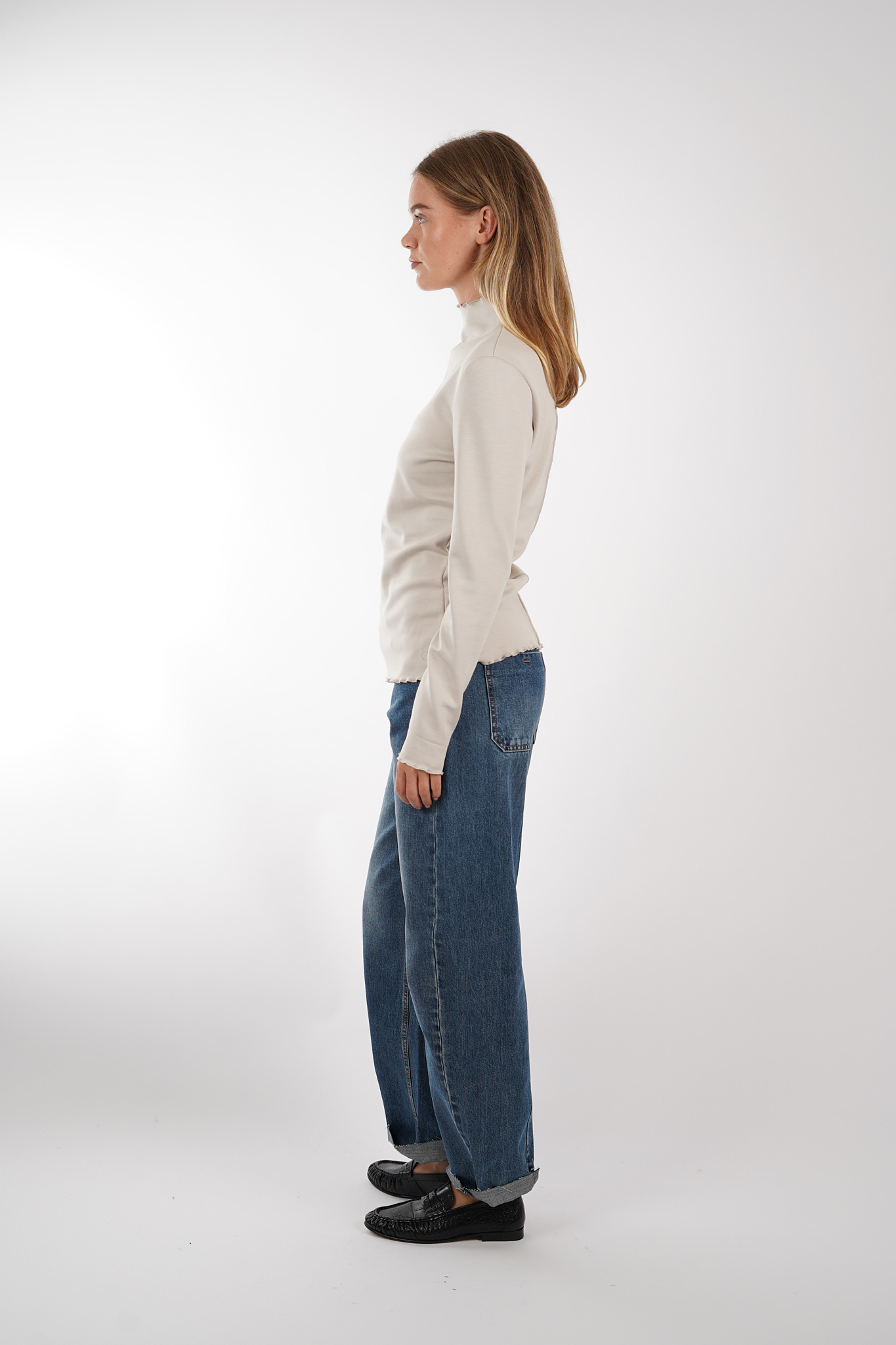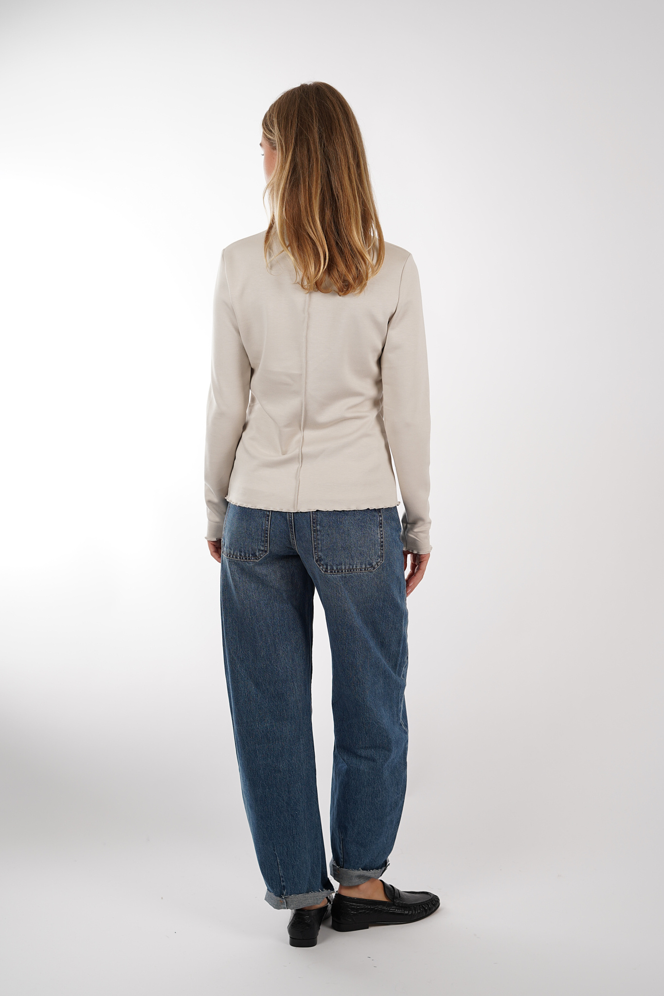 Longsleeve top met opstaande hals van Aimee The Label. De top heeft een rechte aangesloten pasvorm en heeft een gekrulde afwerking bij de hals, manchet en zoom.