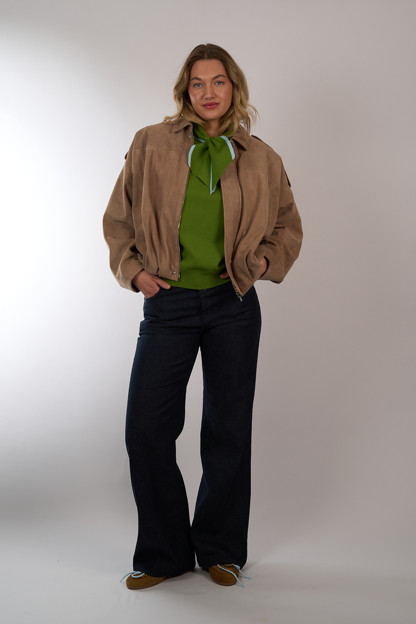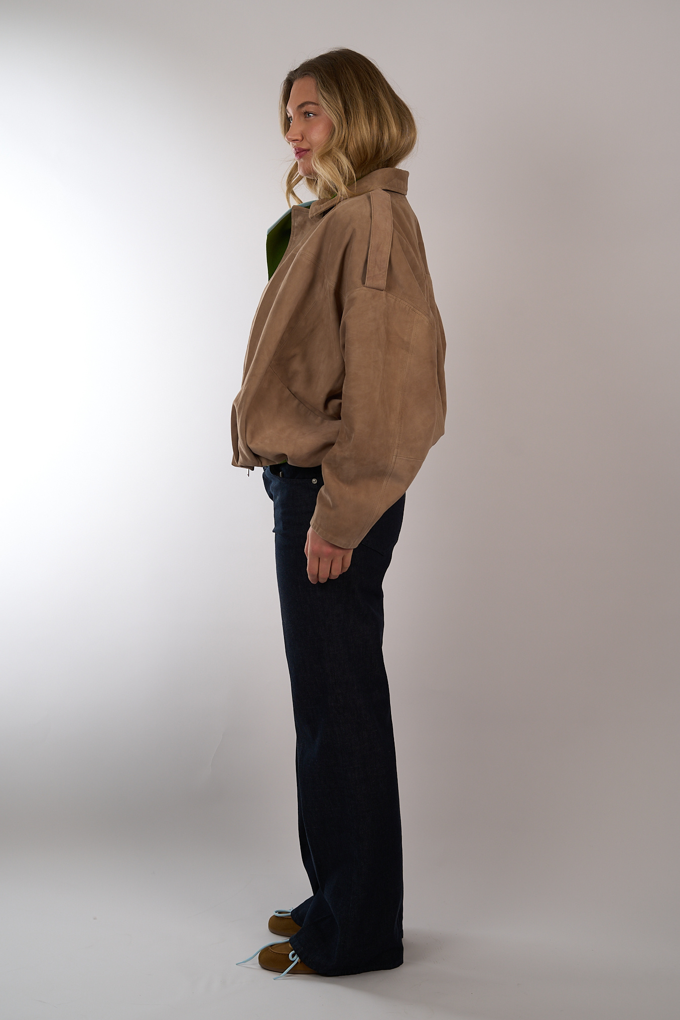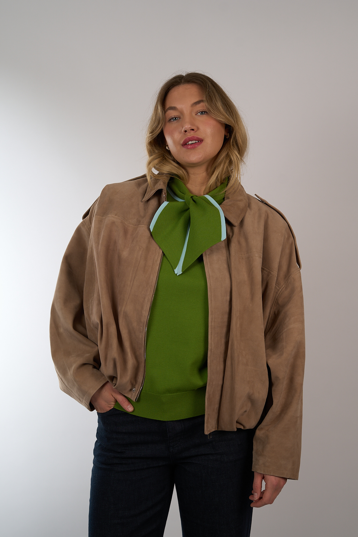 Suede bomberjack van Alter Ego met oversized pasvorm. Voorzien van een plooien bij de zoom, een dubbele sluiting met rits en drukknopen en steekzakken. Het jack is gevoerd.