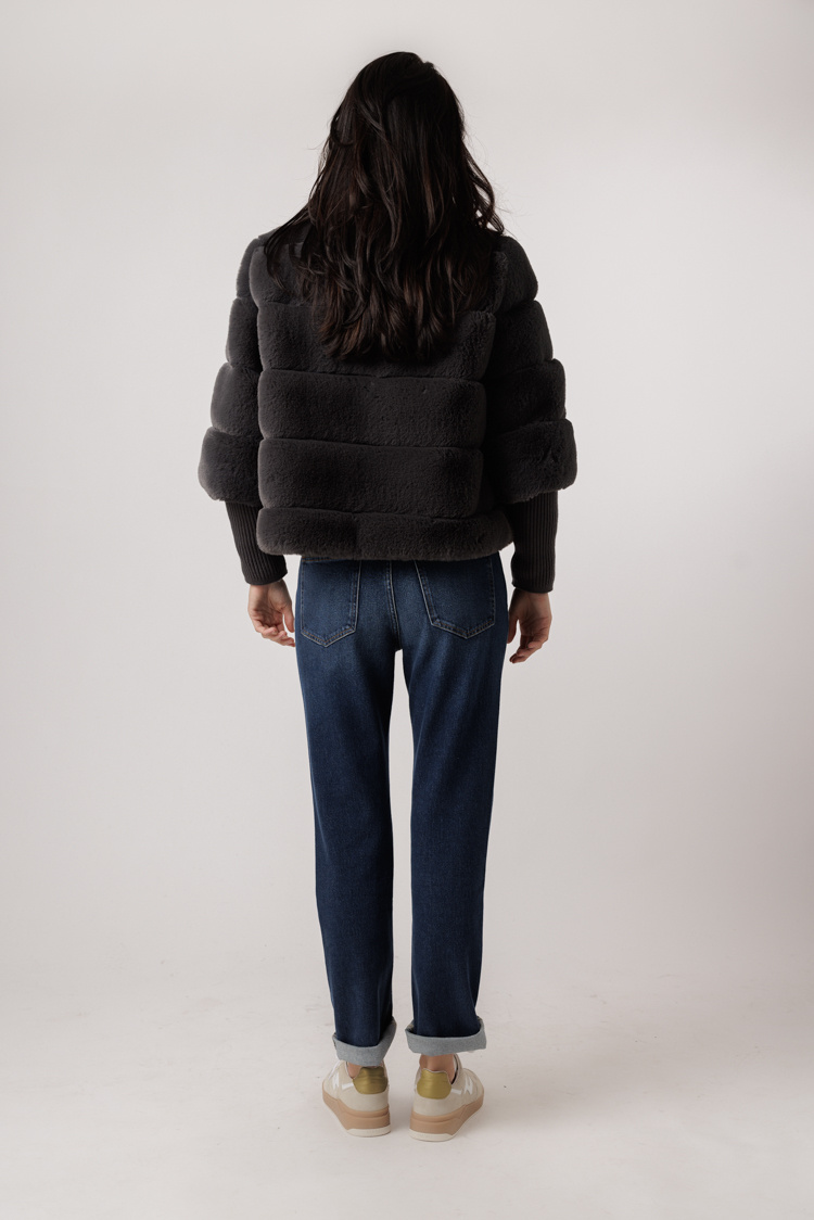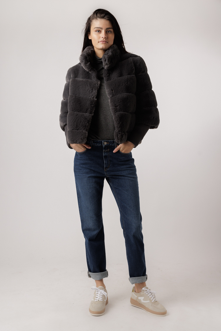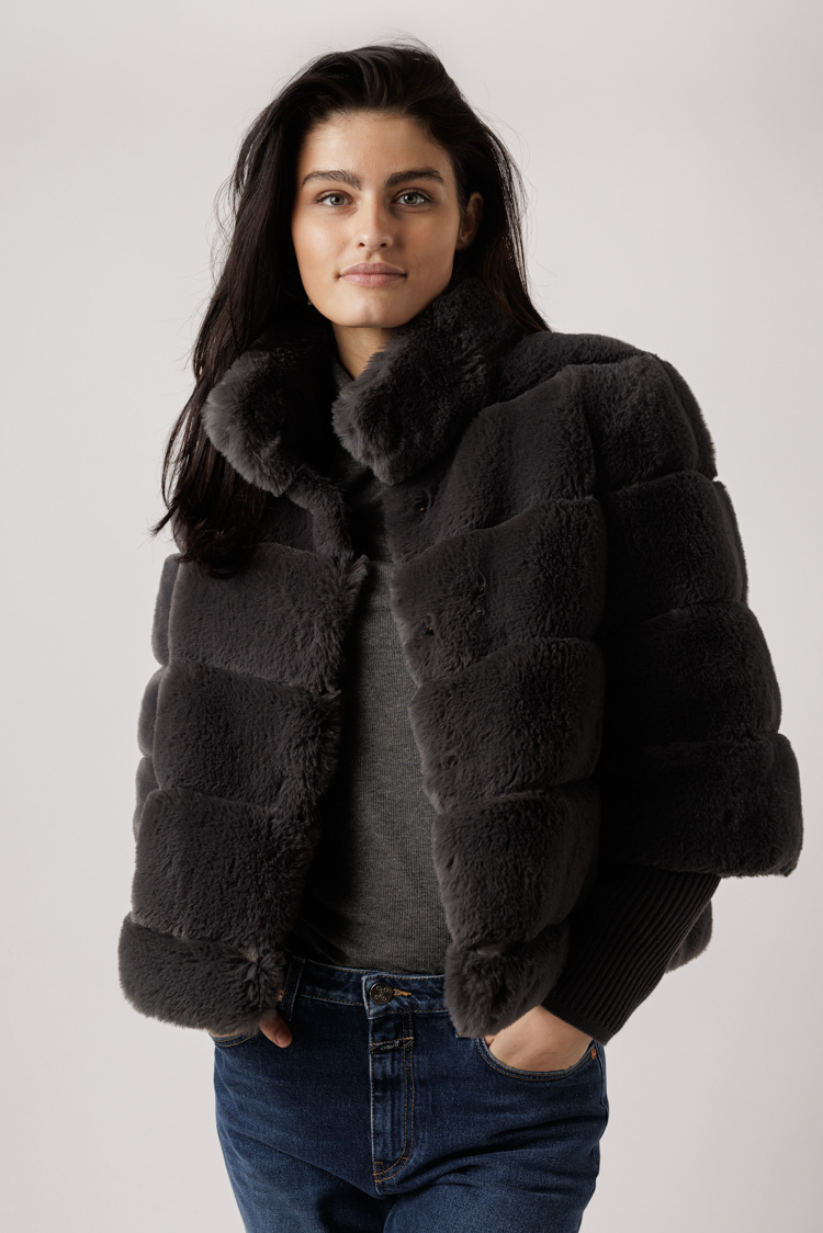 Jack van Alter Ego. Deze jack is gemaakt van een super zachte en warme teddy stof. De jack heeft een hoge hals en een drukknop sluiting op het voorpand.