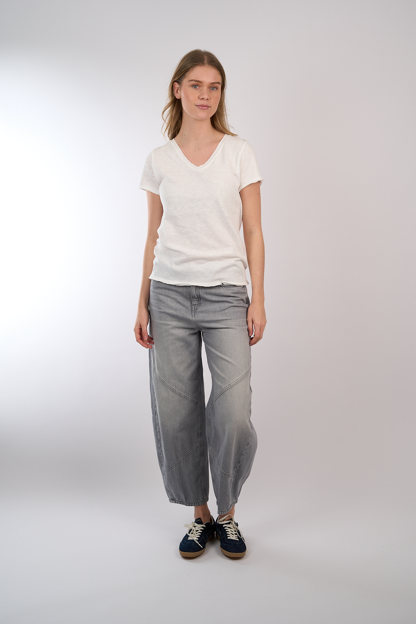 T-shirt van American Vintage met V-hals en korte mouwen, licht doorzichtig.