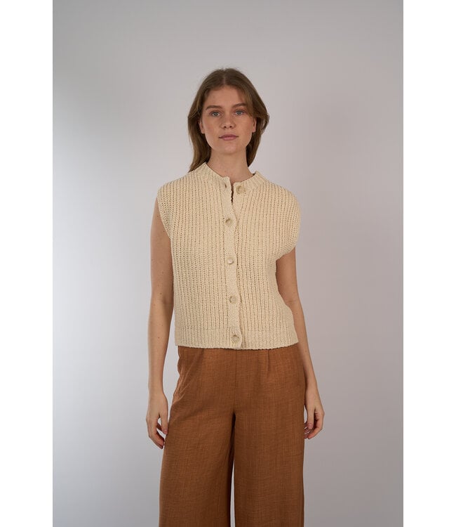Gebreide spencer van By Bar met een rechte pasvorm, knoopsluiting en een ronde hals. Lees meer.