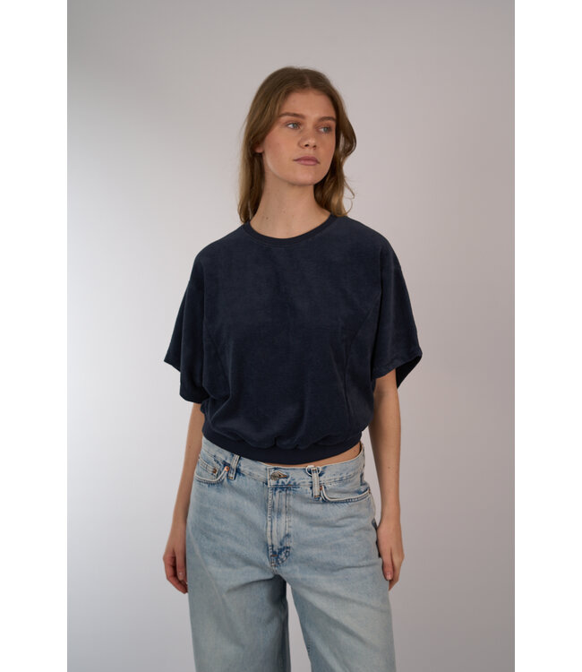 Cropped T-shirt met wijde open mouwen van By Bar gemaakt van zacht badstof. De ronde hals en zoom zijn afgewerkt met ribboorden. Lees meer.