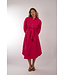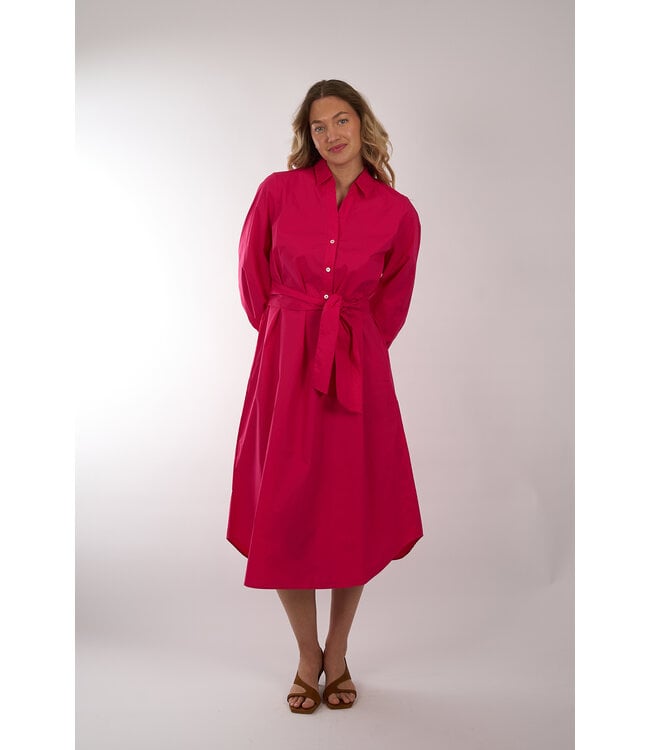 Jurk van Caliban in een midi lengte met een kraag, een halflange knoopsluiting en een los stripceintuur rond de taille. De jurk heeft een A-lijn model en draagt los vallend.