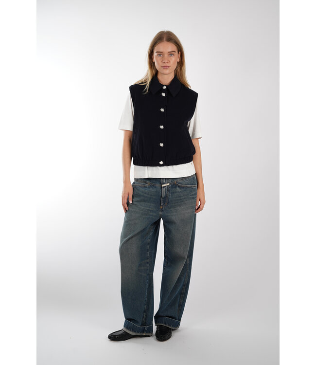 Gilet van Caroline Biss met bomber model. DIt gilet heeft een kraag, knoopsluiting, steekzakken en is elastisch bij de zoom. Lees meer.