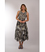 Jurk van Catnoir in een all over dessin met een ronde halslijn en sluit door middel van een ritssluiting aan de achterzijde. De jurk heeft een los ceintuur en loopt in een A-lijn uit.