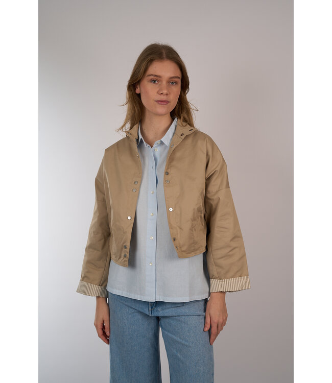 Kort jasje van Circle of trust met elastische rug zoom en doorgestikte plooitjes aan de voorkant. Het jasje heeft een wijde pasvorm en is voorzien van een drukknoopsluiting , opstaande kraag en steekzakken. Lees meer.