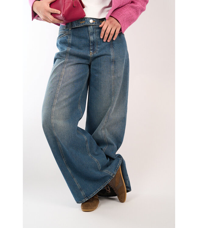 Jeans van Closed. High-waist model met extra wijde pijpen en een opvallende extra band. Lees meer.