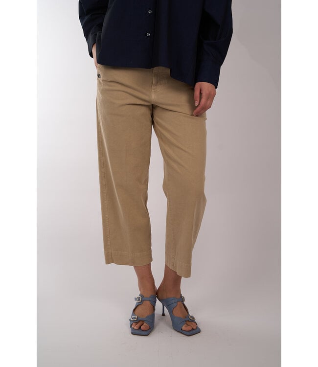 Broek van Closed met een hoge taille, voorzien van een ritssluiting met knoop en riem lussen. De broek is een enkelvrij model en heeft een taps toelopende pasvorm.