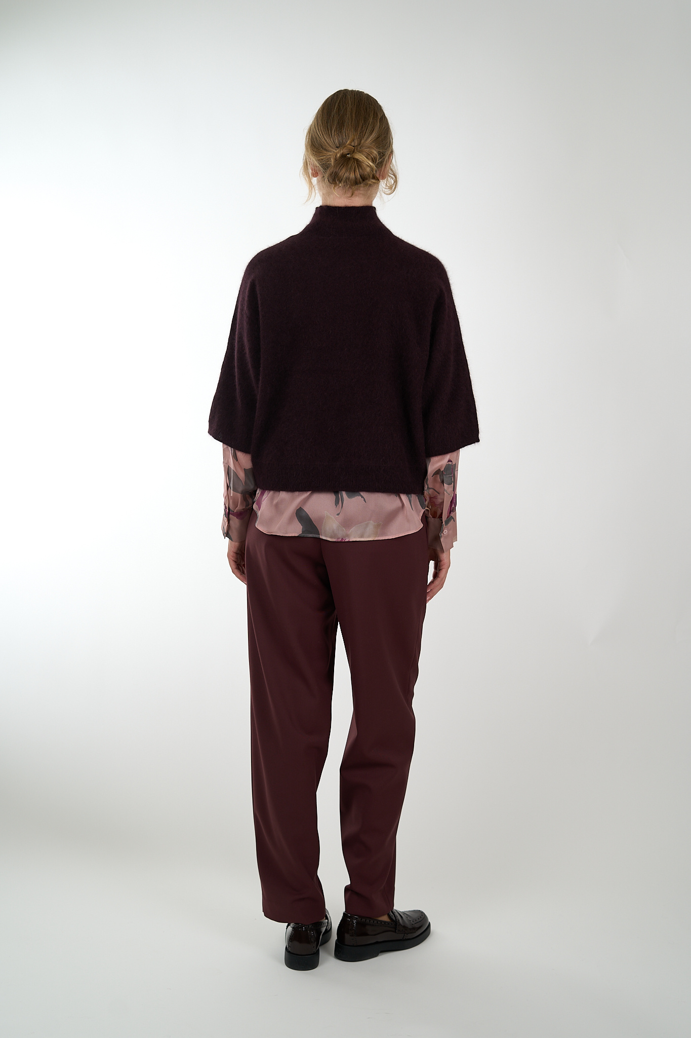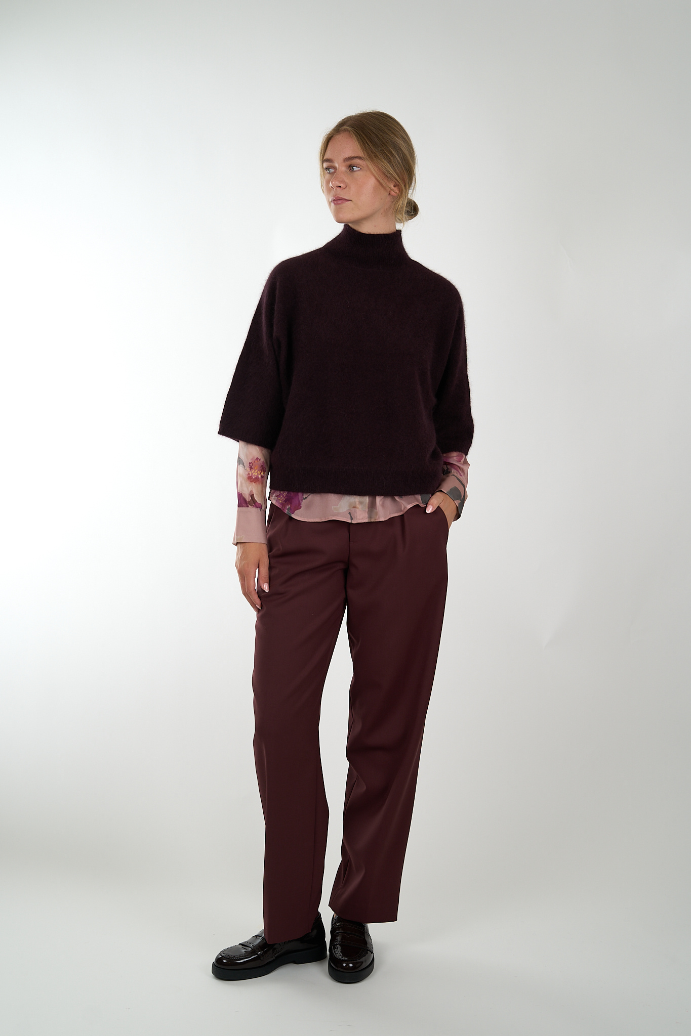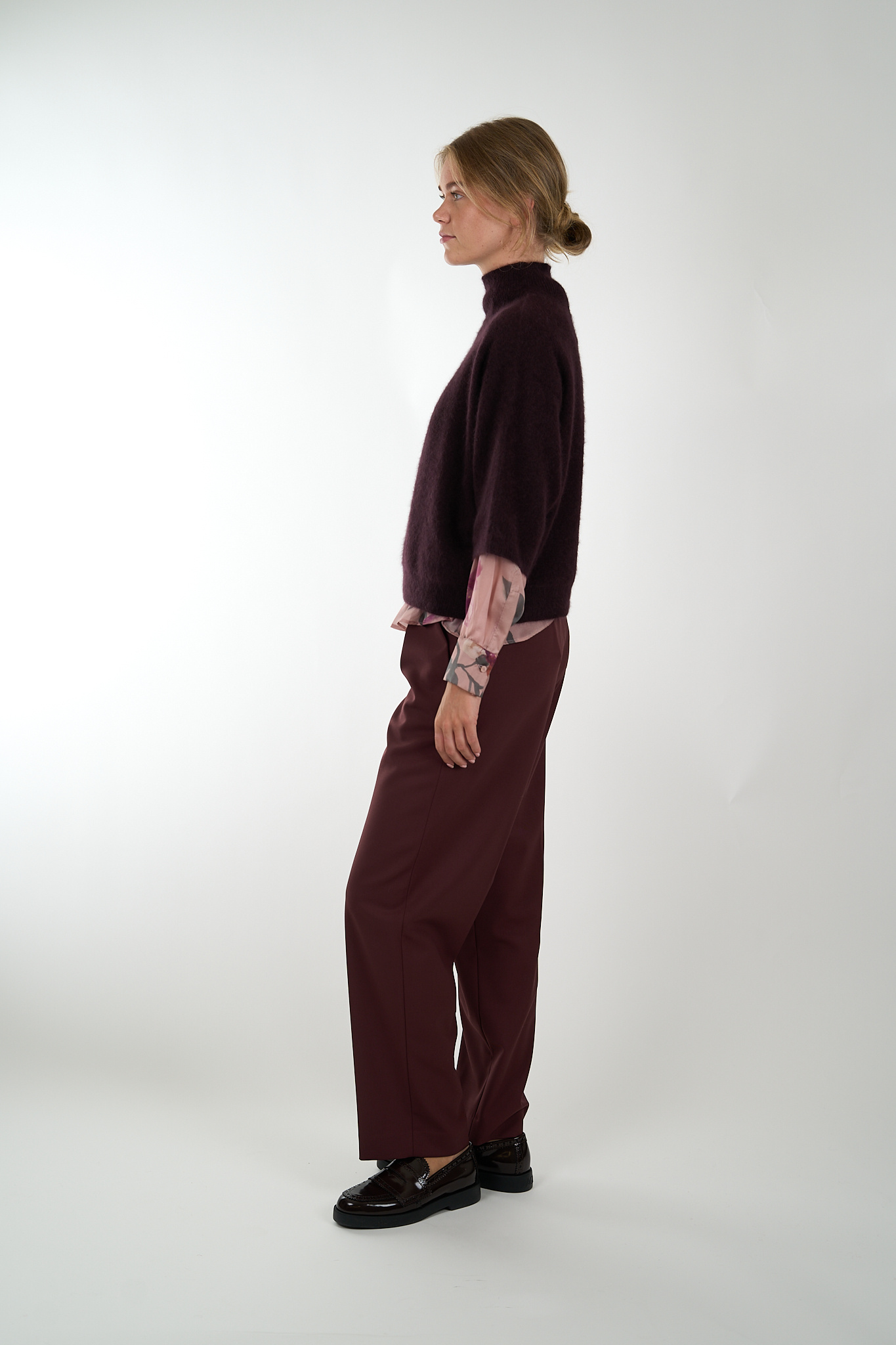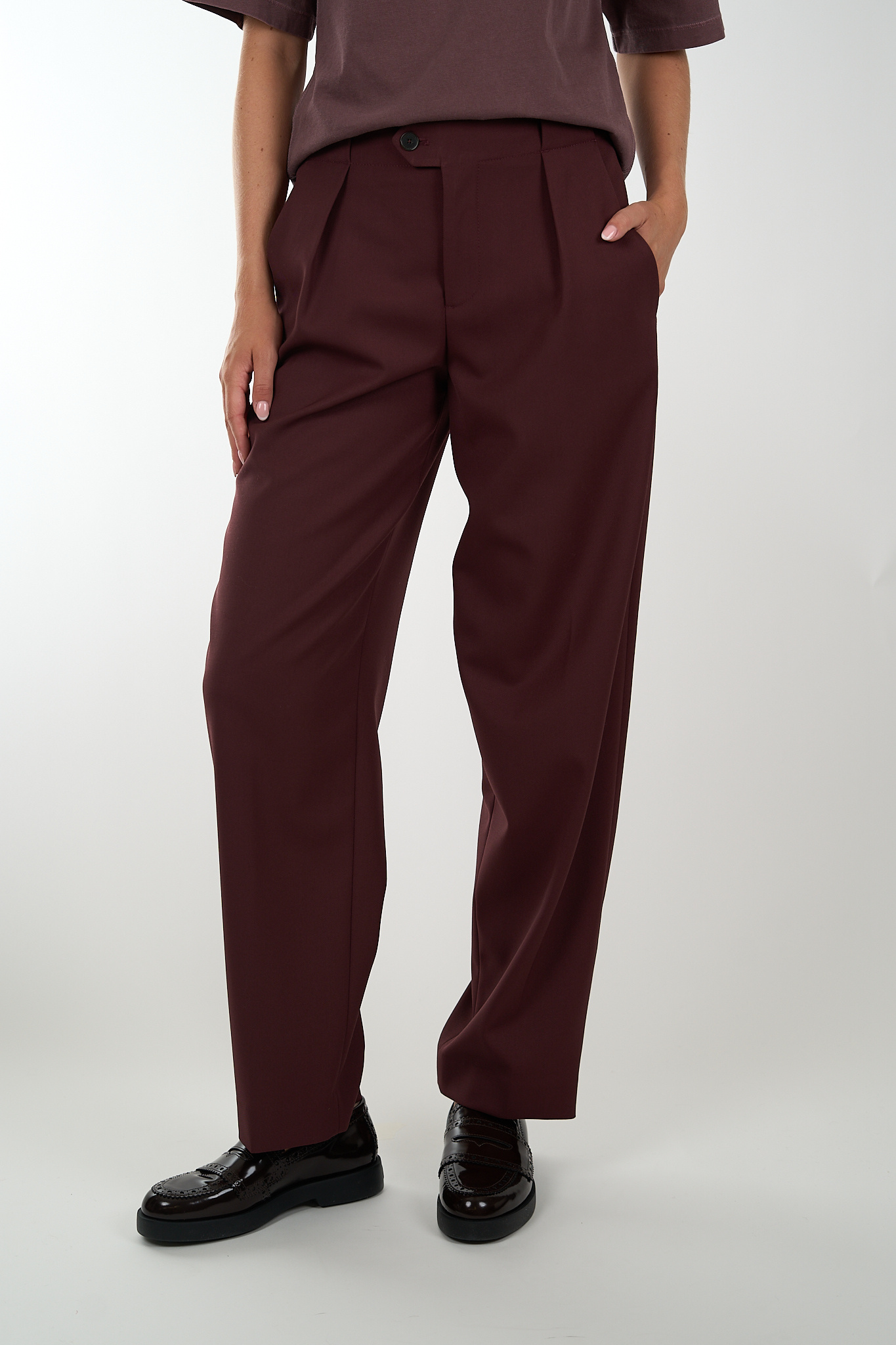 Bordeaux kleurige pantalon van Closed, het is model Mawson. Dit model heeft een subtiele bandplooi en valt wijder op de bovenbenen.