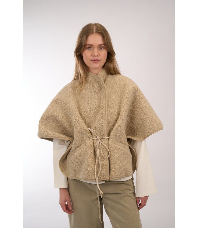 Een lichtgewicht gilet van Club L'Avenir met korte mouwen, ontworpen om aan de voorkant te knopen met delicate koordjes, voor een zacht en verstelbaar silhouet.