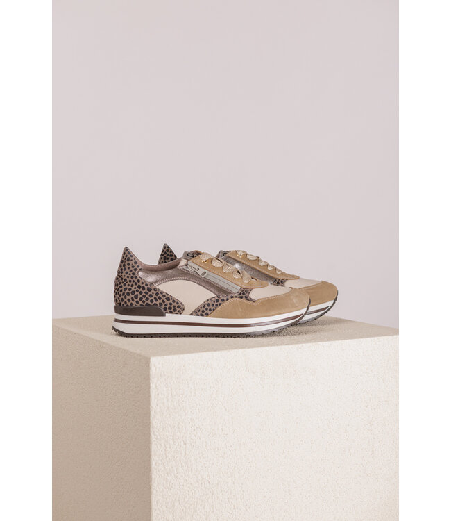 Sneaker van DL Sport. Deze meerkleurige schoen is gemaakt van verschillende materialen en een uitlopende zool met een hoogte van 3 centimeter. Lees meer.
