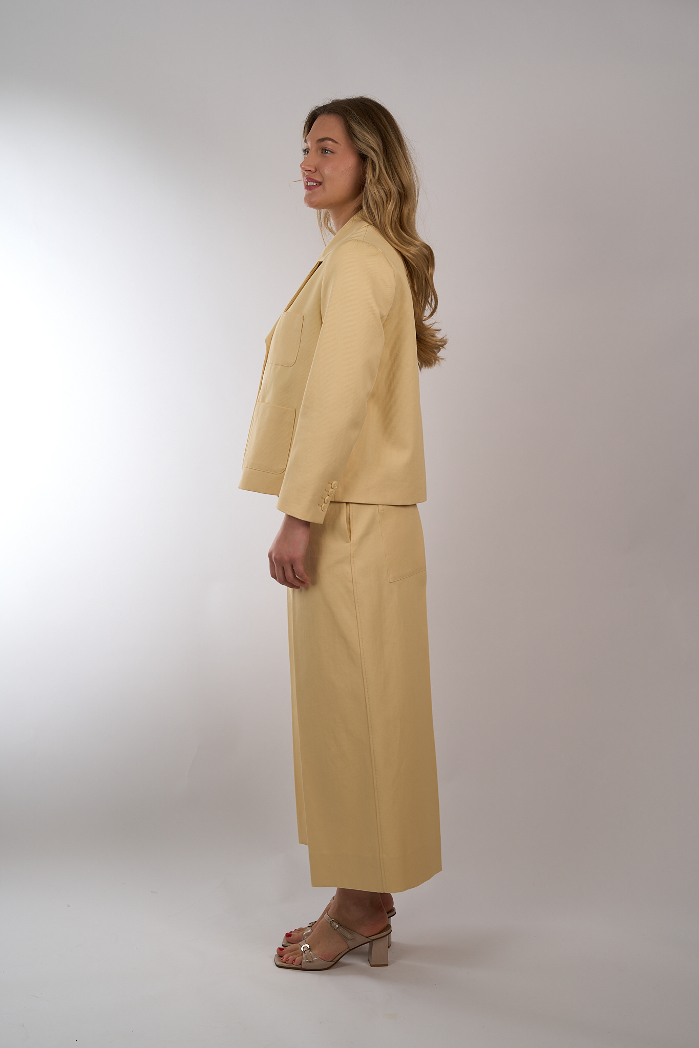 De korte blazer van Dorothee Schumacher heeft een cropped lengte en 3/4 mouwen. Het ongevoerde model heeft een klassieke reverskraag en loopt aan de onderkant licht uit in een A-lijn.