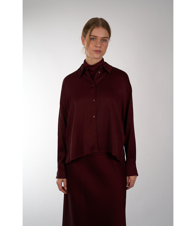 Klassieke overhemdblouse van Drykorn gemaakt van hoogwaardig satijn. Het model valt los en heeft een kraag en knoopsluiting. Lees meer.