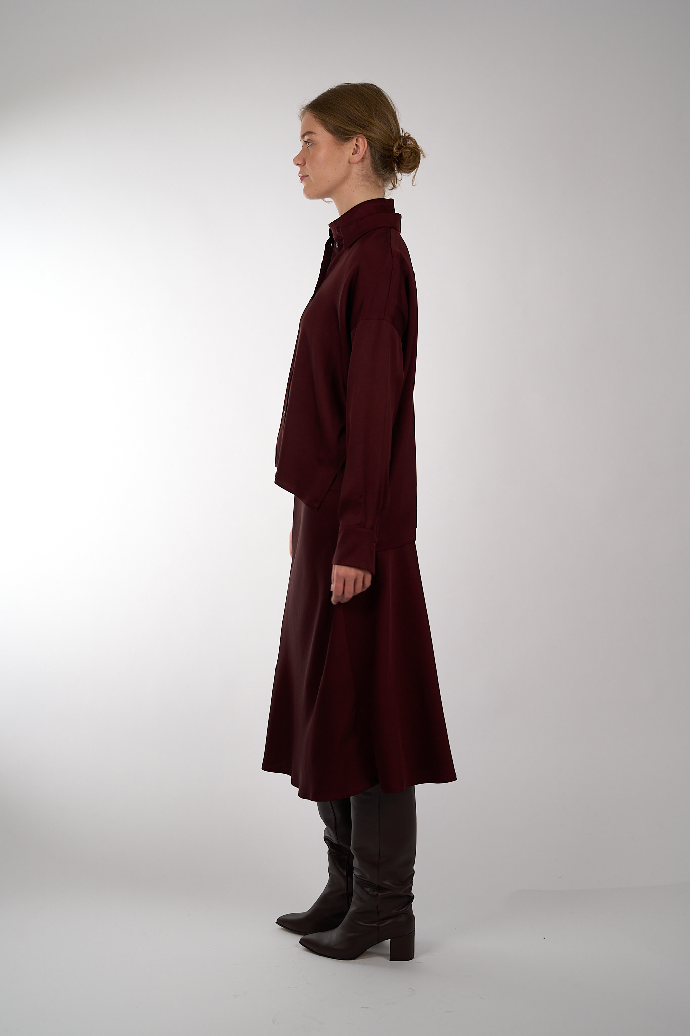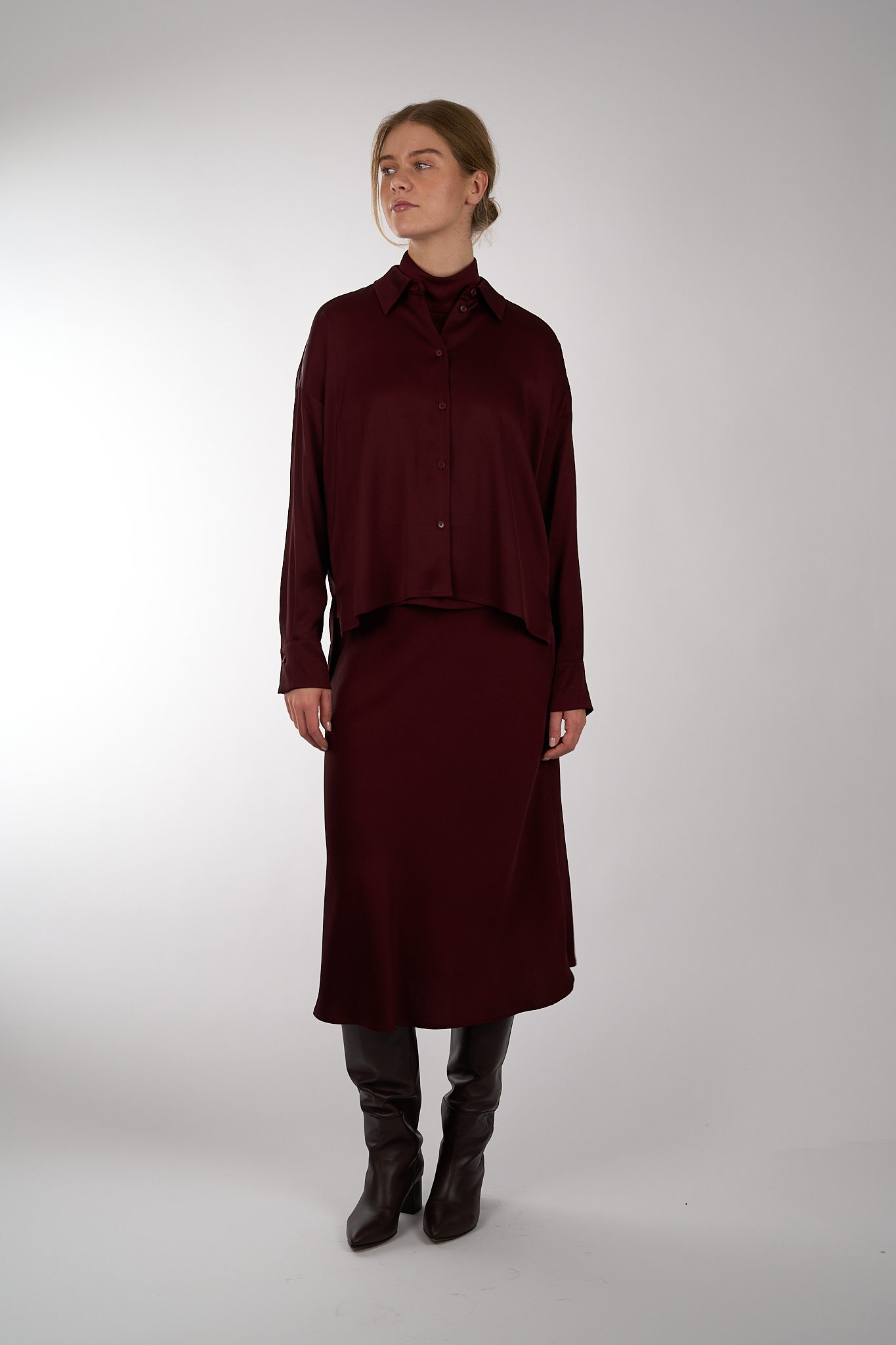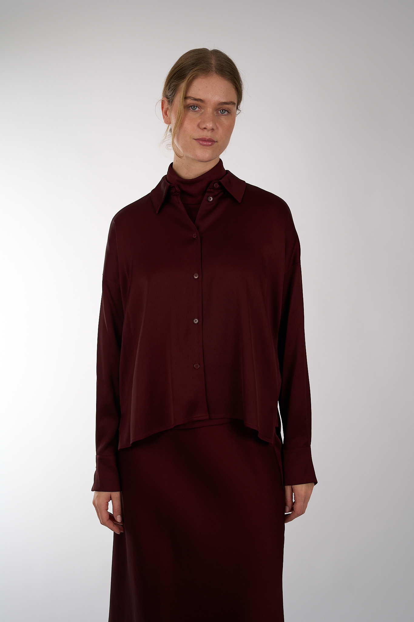 Klassieke overhemdblouse van Drykorn gemaakt van hoogwaardig satijn. Het model valt los en heeft een kraag en knoopsluiting.