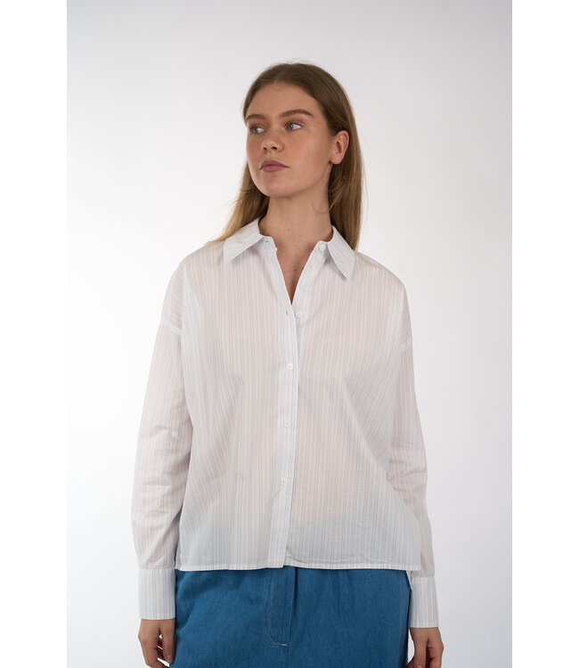 Top van DRYKORN met lange mouwen, knoopsluiting en een subtiel gestreept dessin. Lees meer.