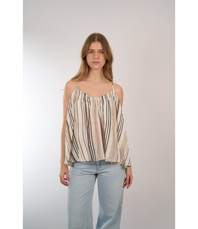Kleur: Ecru, bruin, blauw.