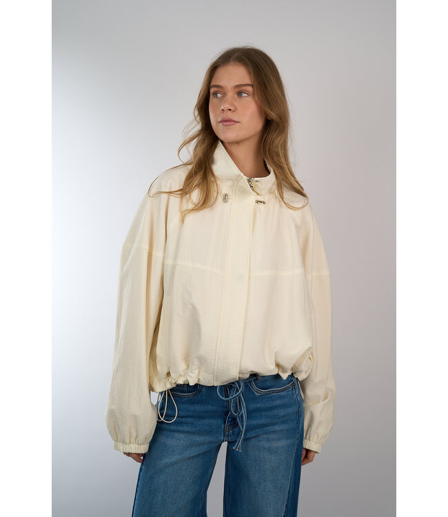 asje van Eleh met drukknopen en ritssluiting, voorzien van een trekkoord aan de onderkant. Het jasje heeft een subtiel parachute-effect. Lees meer.