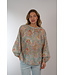 Wijde blouse van Emanou met raglan pofmouwen en een geplooide ronde hals. Halve blinde knoopsluiting aan de voorkant en elastisch bij de manchetten.