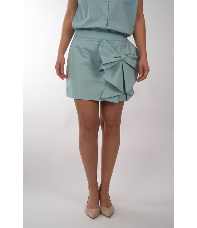 Mini rok van Essentiel Antwerp met een hoge taille en sluit door middel van een blinde ritssluiting. De rok is bewerkt met een opgestikte strik en heeft een subtiele A-snit.