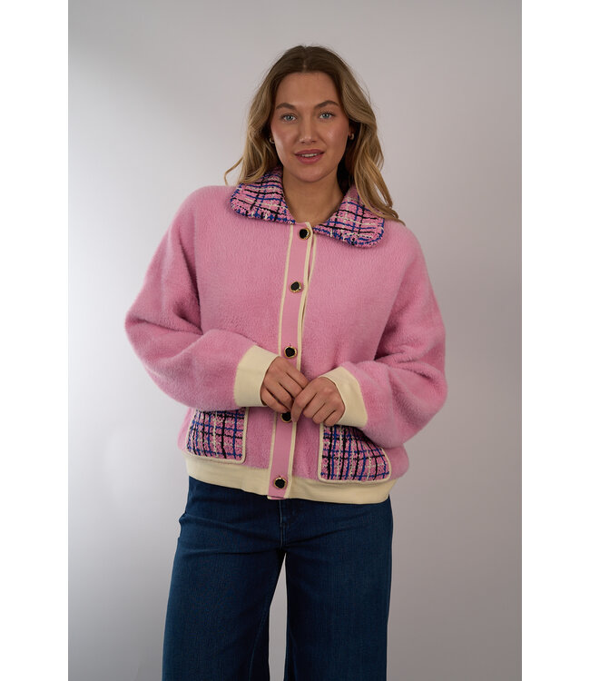 Zacht vest van Essentiel Antwerp ontworpen in een relaxte pasvorm. Hij heeft een contrasterende kraag in tweed en bijpassende opgestikte zakken. Lees meer.