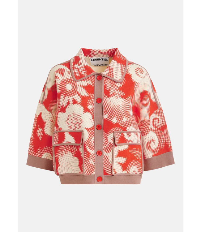 Fijn gebreid vest van Essentiel Antwerp met bloemenprint. Hij is ontworpen in een relaxte pasvorm met knoopsluiting, klepzakken en 3/4-mouwen. Lees meer.
