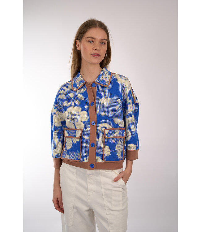 Fijn gebreid vest van Essentiel Antwerp met bloemenprint. Hij is ontworpen in een relaxte pasvorm met knoopsluiting, klepzakken en 3/4-mouwen. Lees meer.