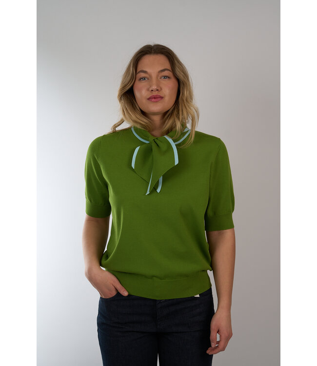 Fijn gebreide polo van Essentiel Antwerp in een relaxte pasvorm. Voorzien van ribgebreide boorden en een contrasterende kraag die je als een sjaaltje kan knopen.