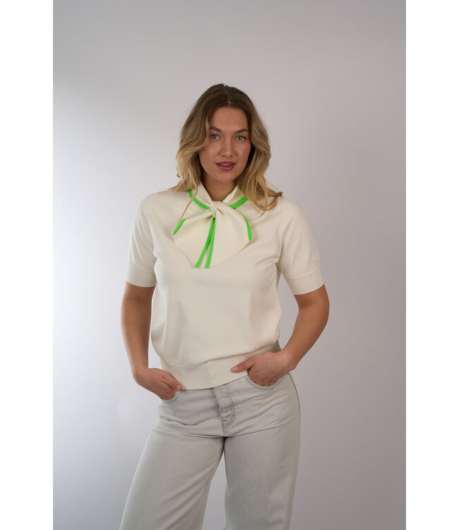 Fijn gebreide polo van Essentiel Antwerp in een relaxte pasvorm. Voorzien van ribgebreide boorden en een contrasterende kraag die je als een sjaaltje kan knopen. Lees meer.
