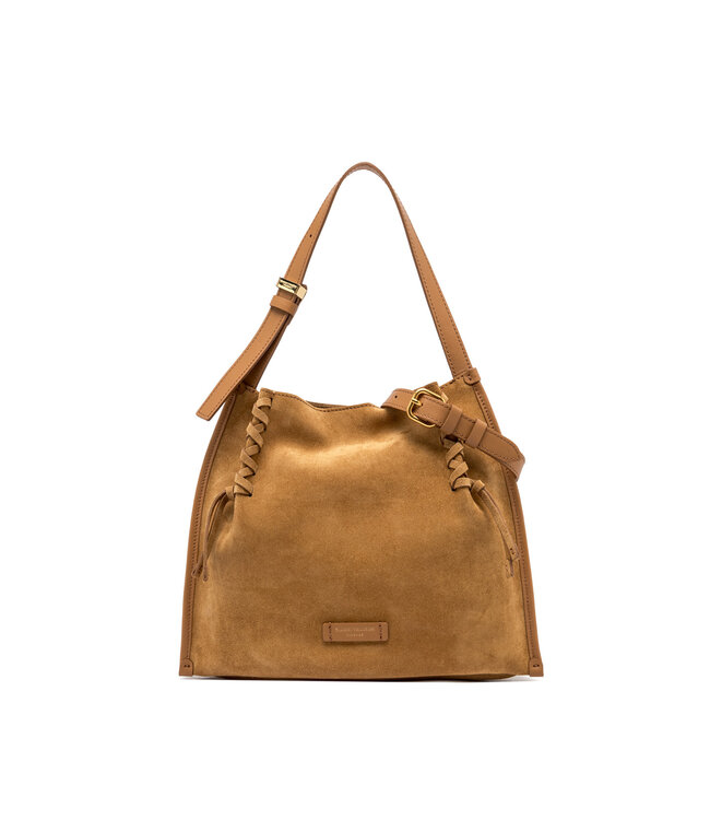 Deze suéde tas van GIANNI CHIARINI met gevlochten details heeft twee verstelbare handvatten, een magnetische druk sluiting en mini clutch.