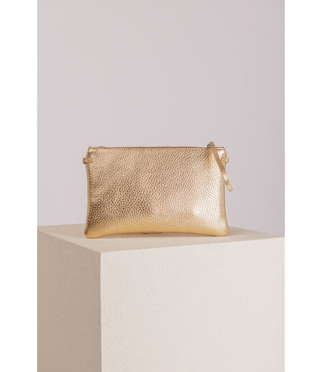 Tas van Gianni Chiarini. Deze tas heeft een opbergfunctie met ritssluiting en is door de afneembare schouderband te dragen als een clutch. De schouderband komt in dezelfde kleur als de tas.