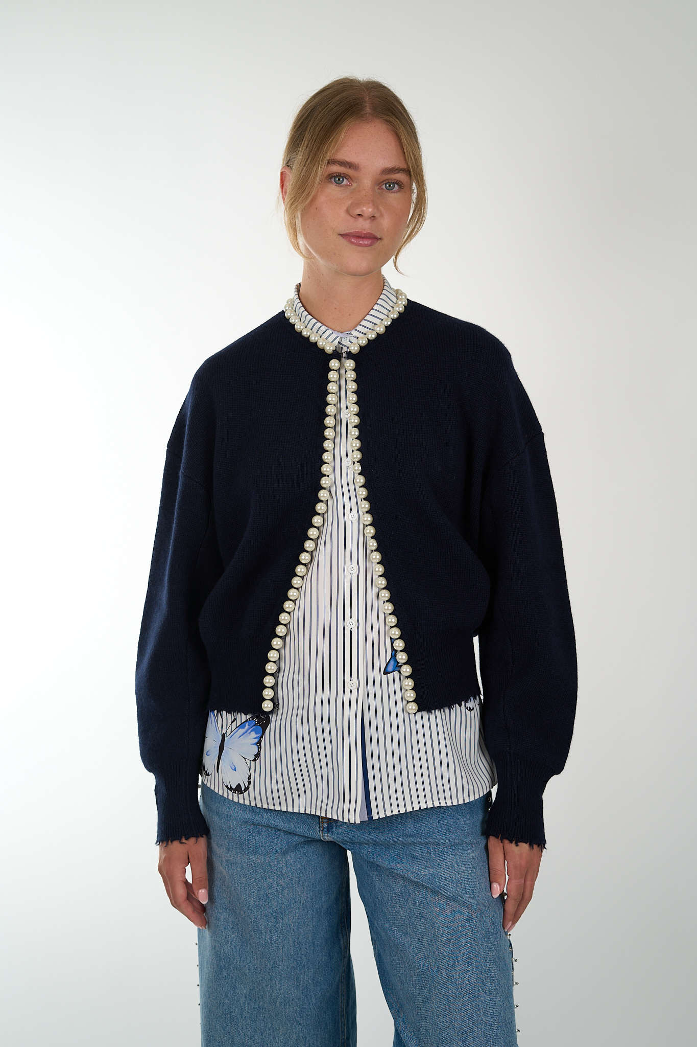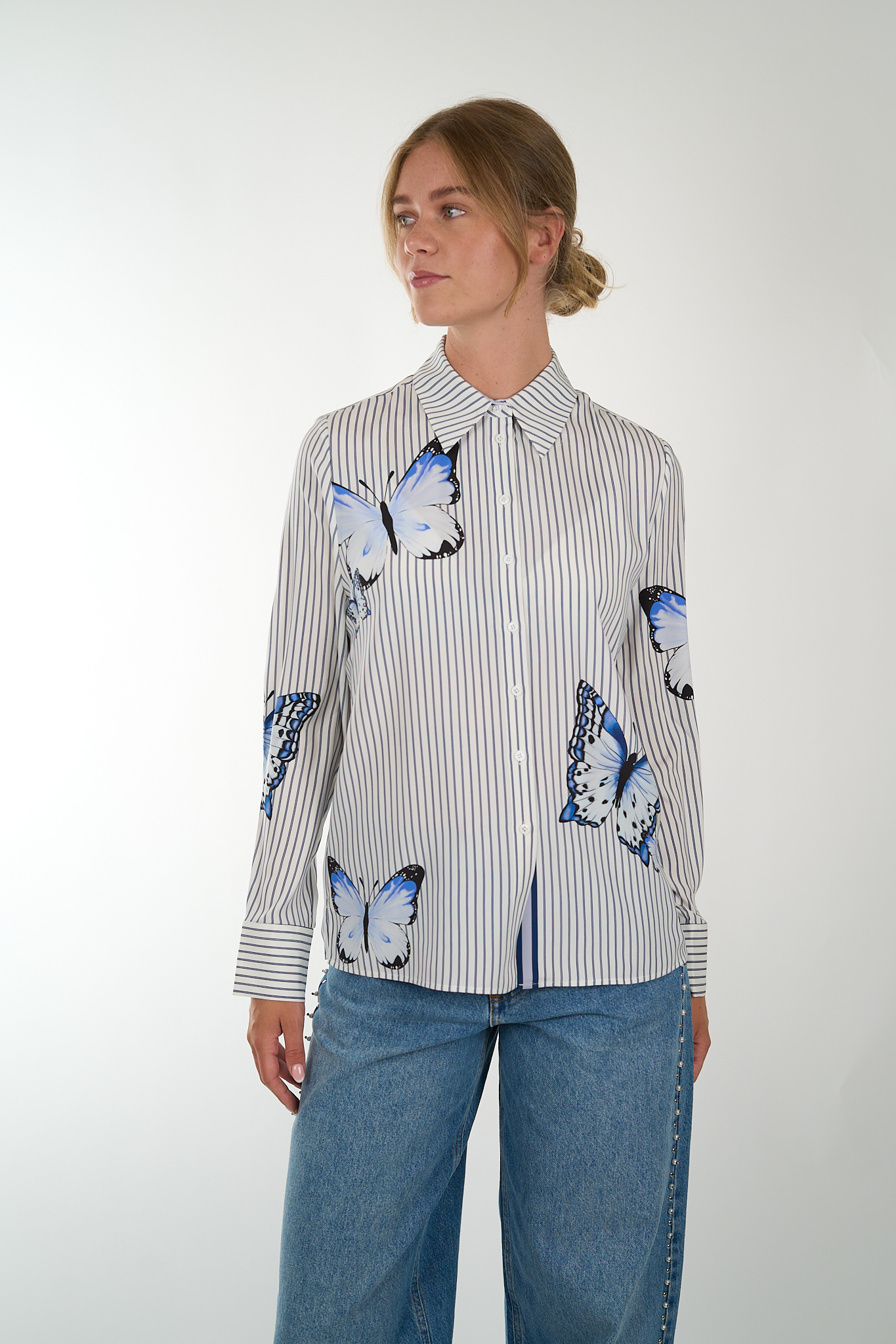 Prachtige zijde blouse van HERZEN'S ANGELEGENHEIT met strepen en vlinder print. De blouse heeft een reguliere pasvorm en de kwaliteit heeft stretch voor extra draagcomfort.