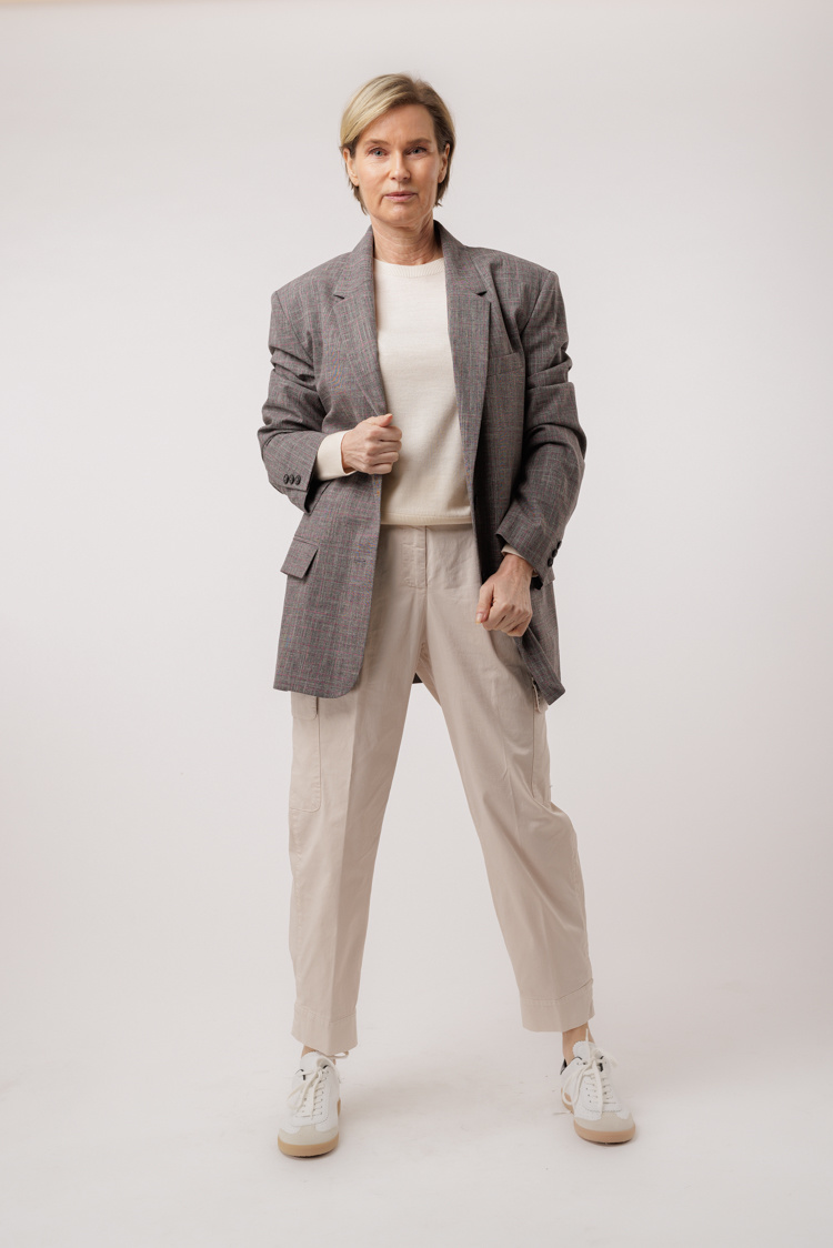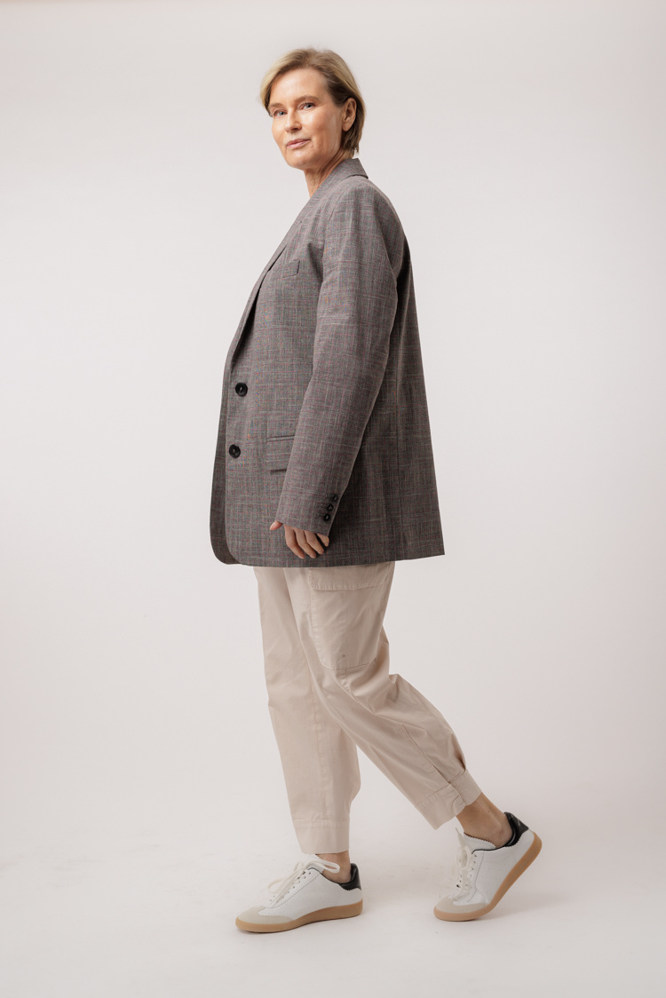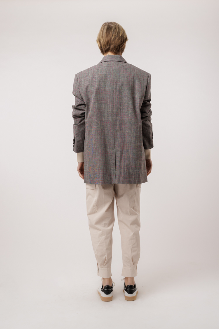 Blazer van Isabel Marant. Deze blazer in ruit dessin heeft een grove revers kraag en een paspel zak op de borst. De blazer heeft een oversized pasvorm.