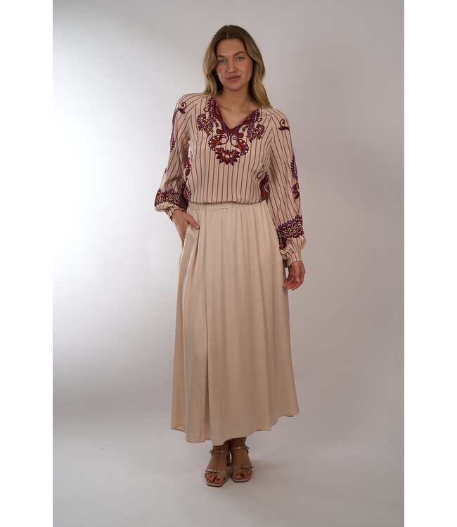 Rok met een zwierig silhouet van IVI gemaakt van hoogwaardige stretchzijde. Voorzien van een elastische tailleband en steekzakken. Lees meer.