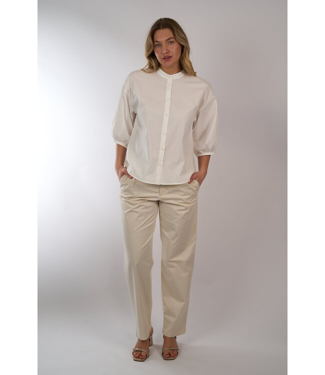 Wijde blouse van Japan TKY met halflange pofmouwen, een opstaand kraagje en knoopsluiting. Lees meer.