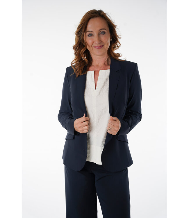 Blazer van JAPAN TKY gemaakt van gemakkelijk te onderhouden, kreukvrij jersey met getailleerde pasvorm. Ontworpen met een dubbellaags voorpand en diagonale naden met steekzakken. Het model heeft een reverskraag en knoopsluiting.