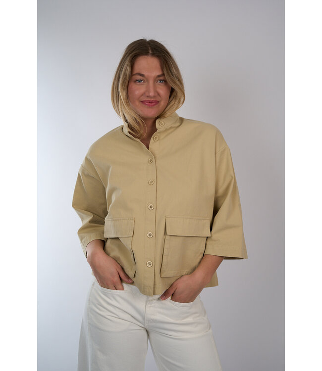 Jasje van JC Sophie met knoopsluiting, ronde hals en korte mouwen.