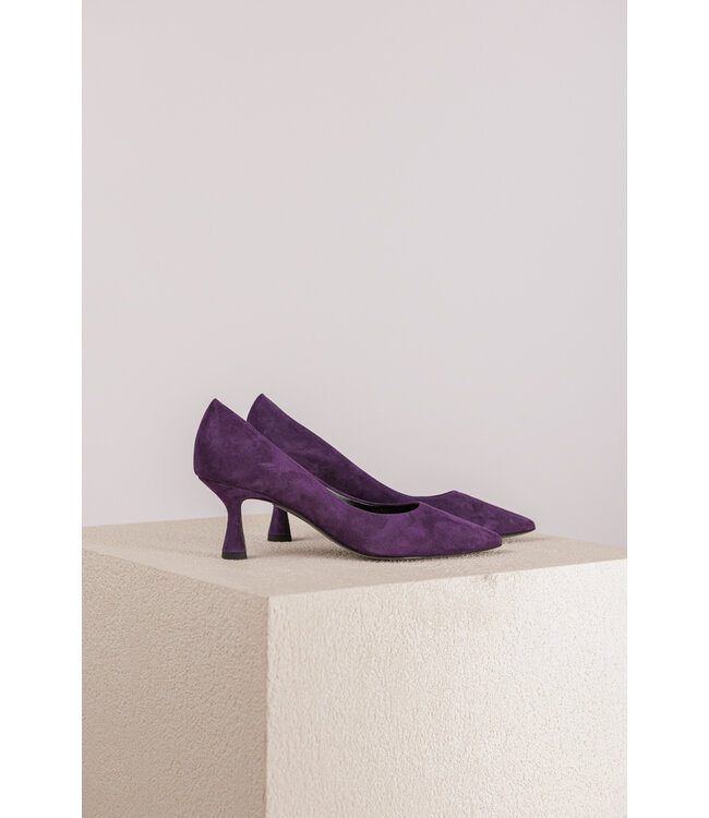 Pump van Kennel & Schmenger. Deze pump heeft een spitse neus en is gemaakt van suède. De pump is leer gevoerd en heeft een leren loopzool. De hakhoogte is 6,5 cm.