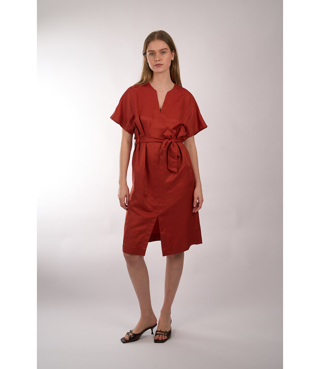 Midi-lange jurk van La Fee Maraboutee met metallic effect ontworpen in een losse pasvorm. Voorzien van een V-hals, steekzakken en een brede strik ceintuur. Lees meer.