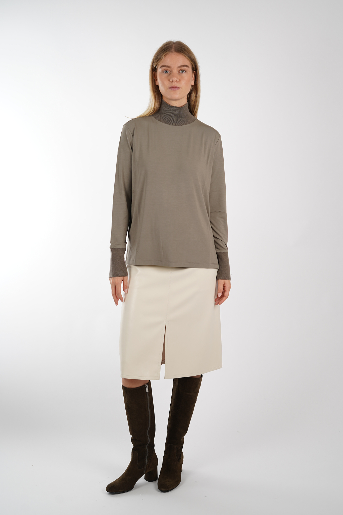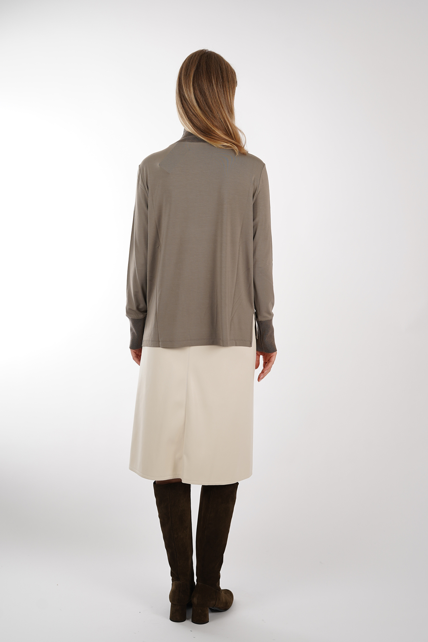 Materiaal: 96% Viscose, 4% Elastaan. Boordstof: 70% Scheerwol, 20% Zijde, 10% Kasjmier.