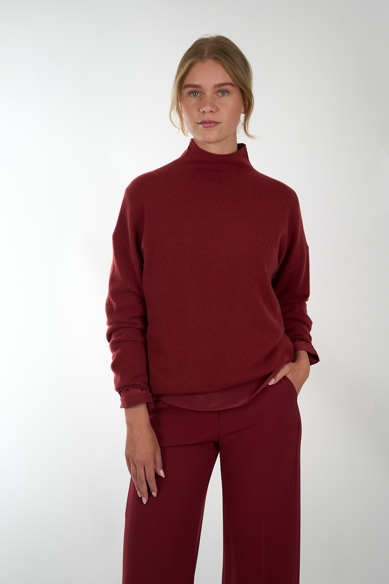Prachtige gebreide pullover van Luisa Cerano met een kleine opstaande kraag. Deze pullover valt goed op maat en draagt enorm comfortabel.