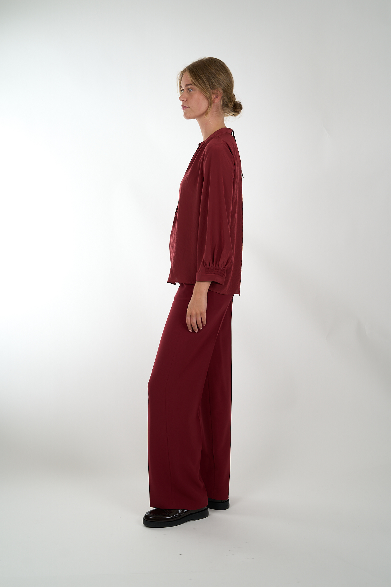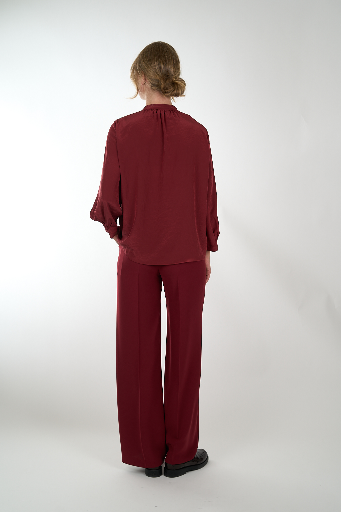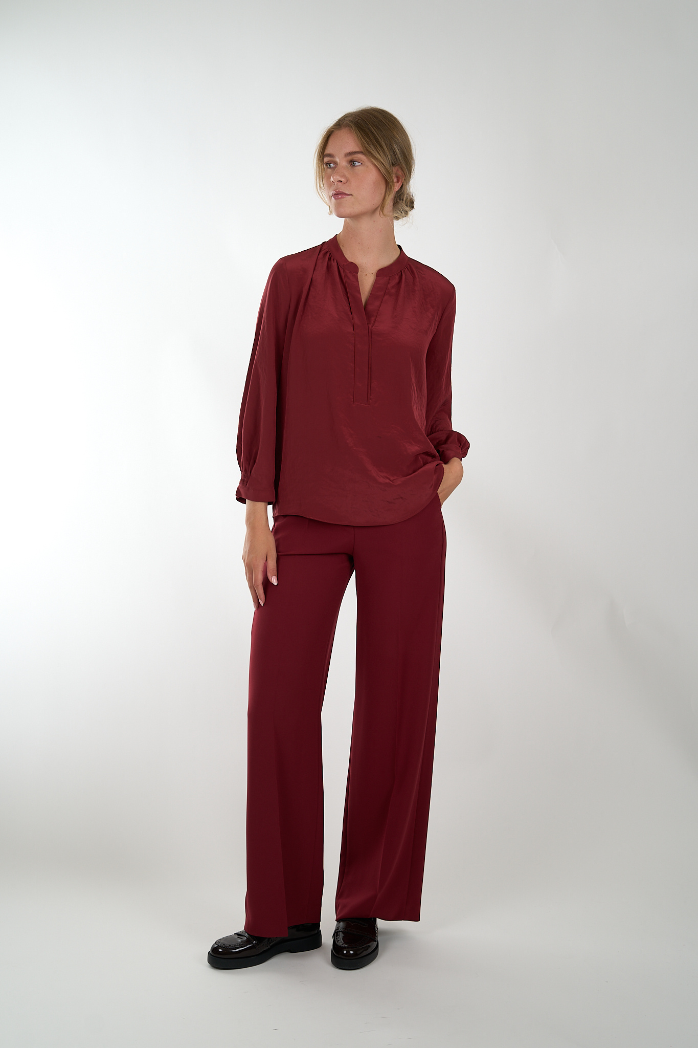 Diep rode blouse van Luisa Cerano met een V hals. De blouse is gemaakt van een namaak zijde, waardoor het een prachtige glans heeft en alsnog makkelijk is qua onderhoud.