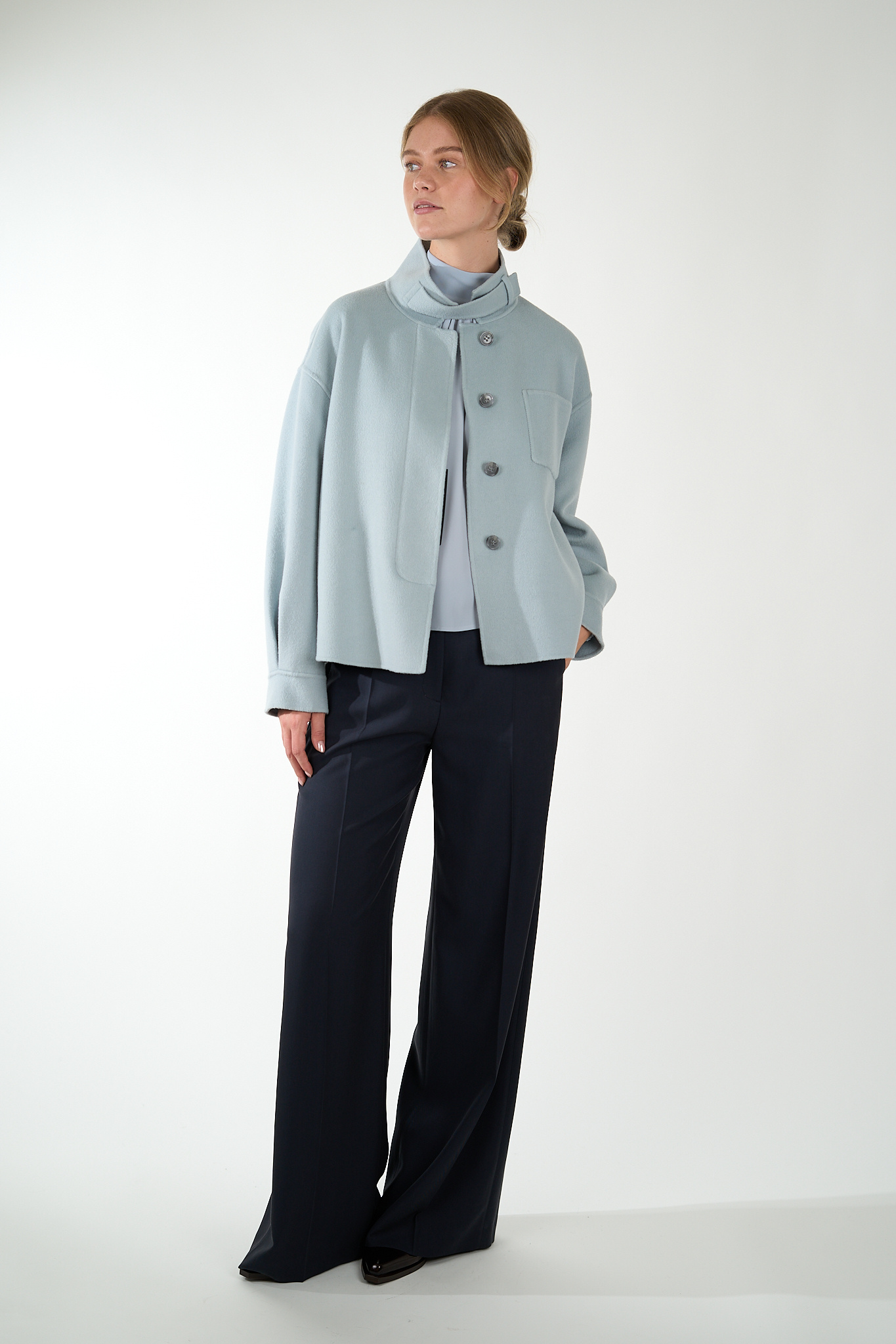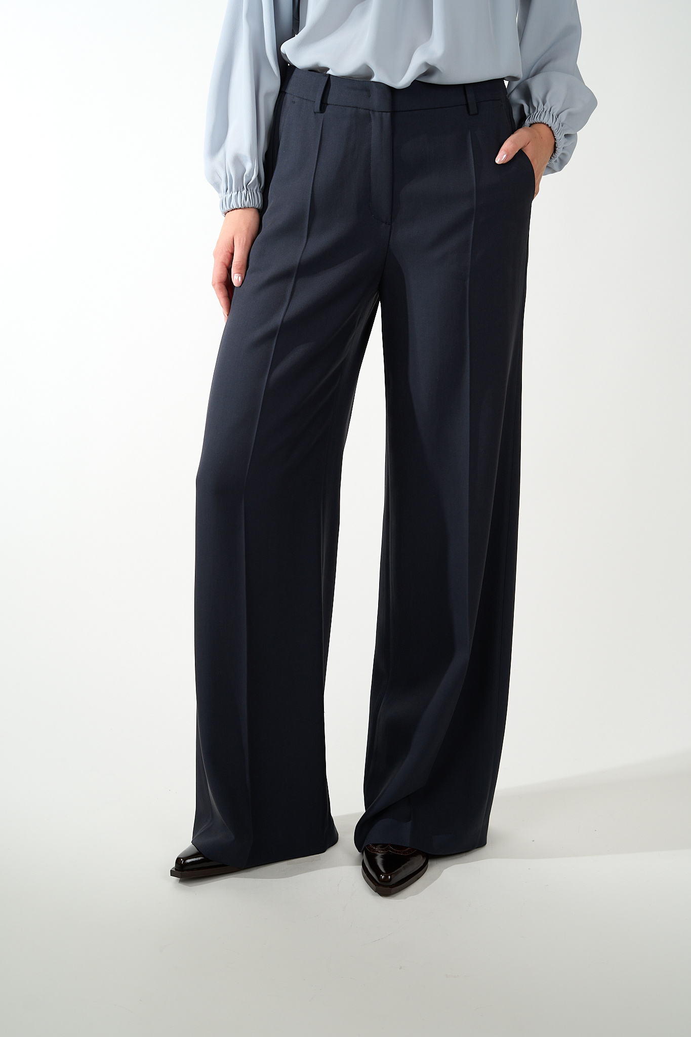 Broek met wijde pijpen van LUISA CERANO gemaakt van zacht gedrapeerde gabardinestof. De broek is voorzien van riemlussen, steekzakken aan de zijkant en aangegeven achterzakken.
