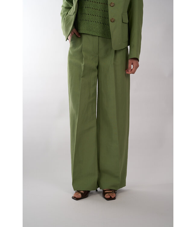 Linnen pantalon van Luisa Cerano met een bandplooi, een reguliere taillehoogte met rits- en knoopsluiting en steekzakken. De pantalon heeft een recht vallende pijp.